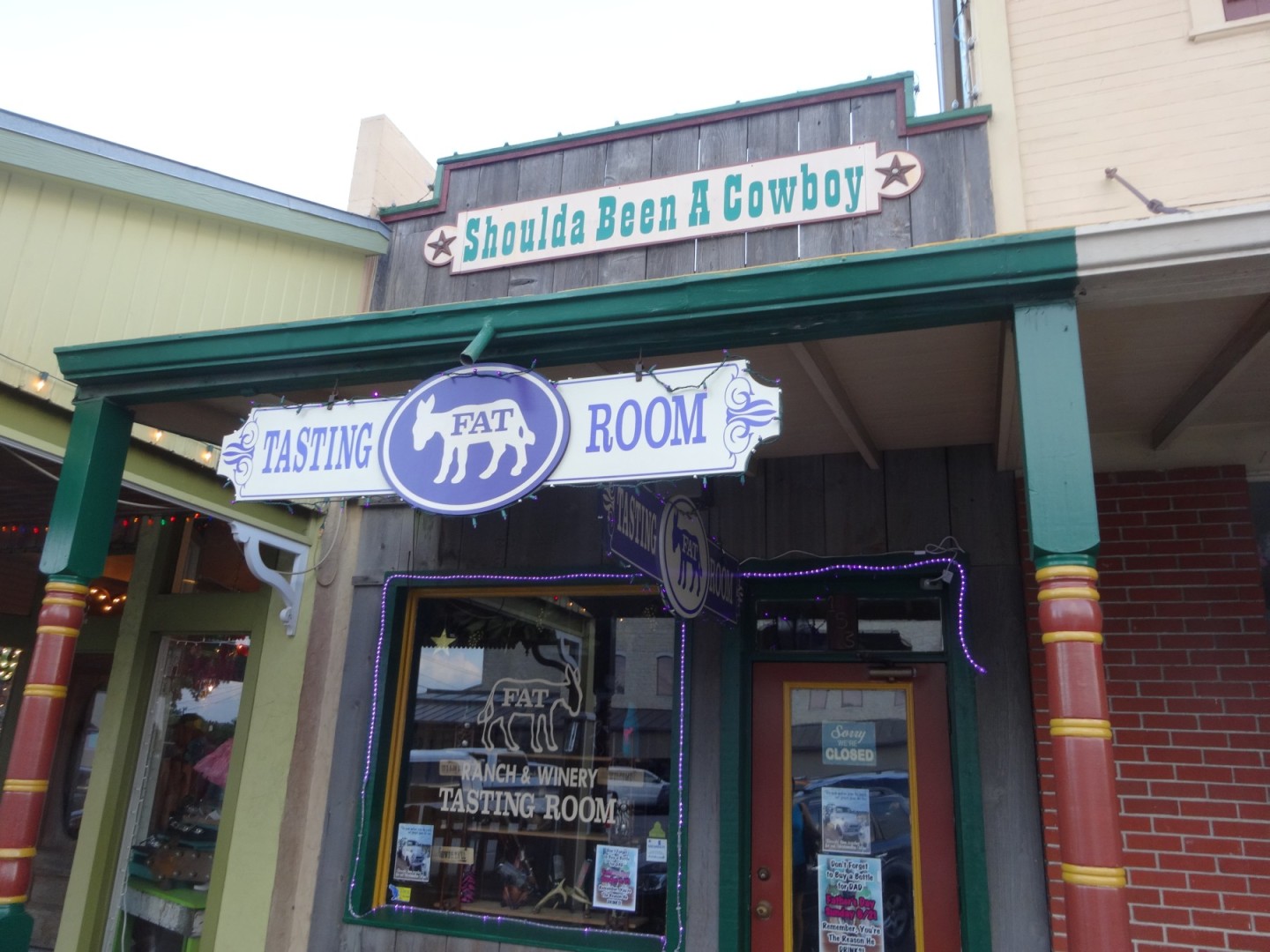 Die Fat Ass Ranch & Winery an der Main Street bietet dieselben großartigen Weine und Verkostungen wie der Verkostungsraum auf dem Fat Ass Ranch-Weinberg am Highway 290.