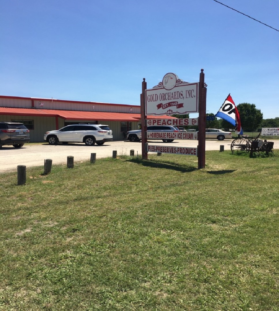 Gold Orchards, Inc. ist ein Familienbetrieb, der saisonale Pfirsiche, Pflaumen, Nektarinen, Produkte, Pfirsicheis und Kuchen anbietet. Die Bäckerei vor Ort serviert Kuchen und Cobbler direkt aus dem Ofen sowie das beste Pfirsicheis zum Mitnehmen. Im Laden gibt es auch spezielle Lebensmittel und einen Geschenkeladen.