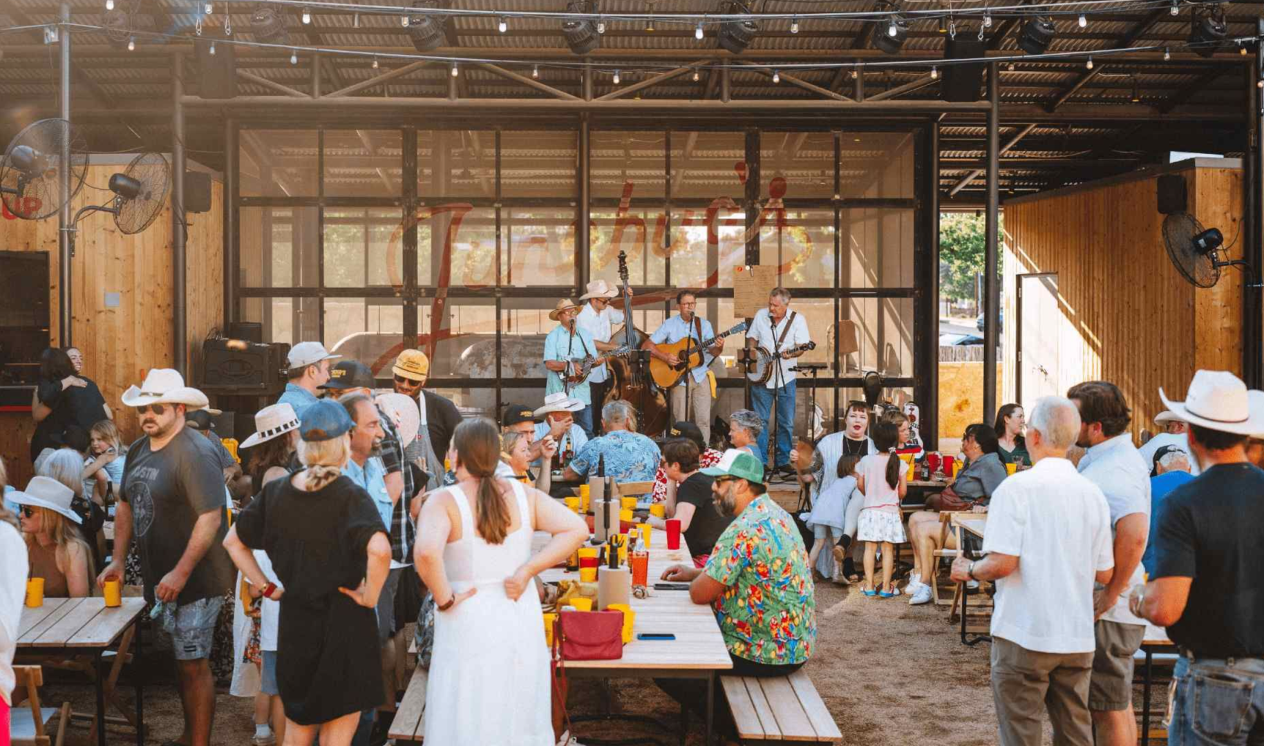 Ein Hinterhof-BBQ-Lokal in Fredericksburg, Texas, das Essen, Gemeinschaft, Familie und Freunde zelebriert. Das BBQ ist gutgläubig, die texanischen Sonnenuntergänge sind kostenlos. Sie finden uns direkt vor dem Albert Hotel.