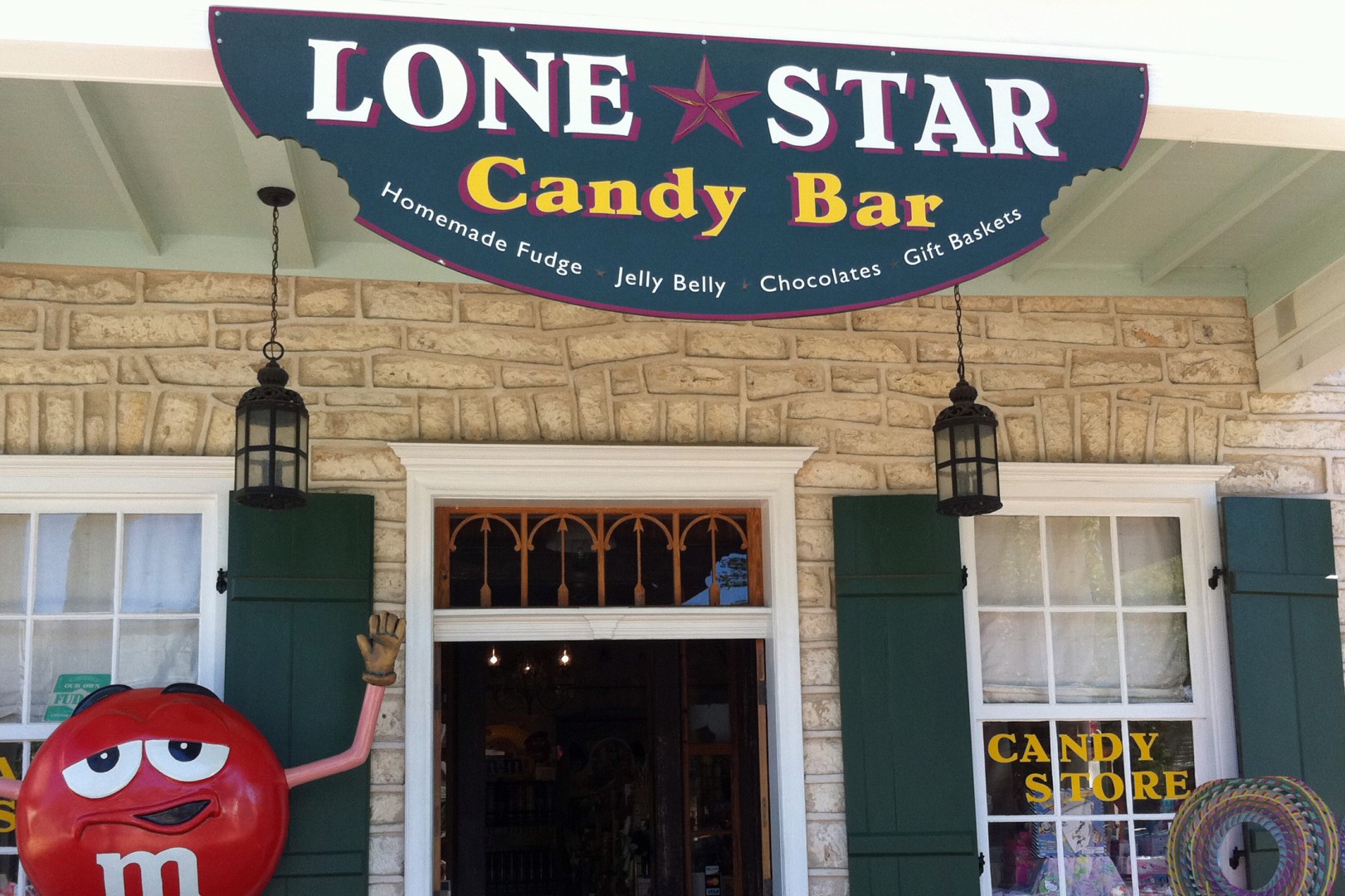 Die Lone Star Candy Bar bietet mehr als 40 Sorten frischen, hausgemachten Fudge, 36 Sorten Jelly Belly's, 36 Sorten Salzwasser-Toffees, 21 Farben von M & Ms, eine große Auswahl an nostalgischen Schokoriegeln und vieles mehr. Es gibt auch Pfirsich-Fudge, der mit Pfirsichen aus dem Hill Country hergestellt wird. Die Lone Star Candy Bar ist auch für ihre in Schokolade getauchten Produkte bekannt, darunter in Schokolade getauchter Speck, Essiggurken, Jalapenos, Twinkies und Divinity-Rollen.