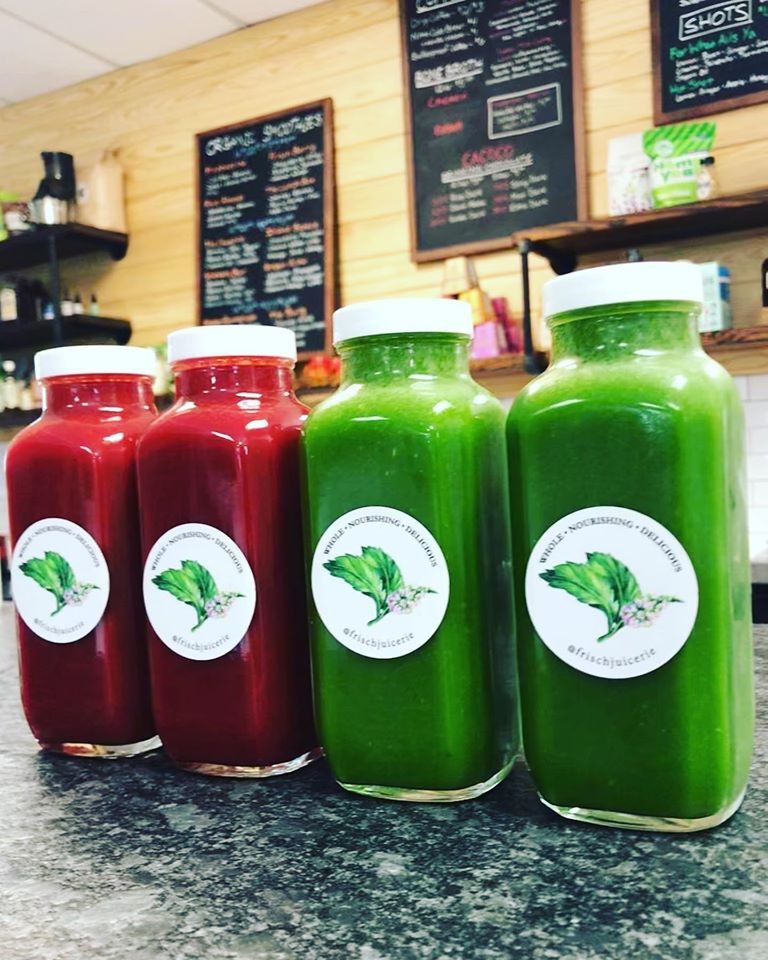 Frisch Juicerie bietet nahrhafte, hausgemachte Getränke aus gesunden und biologischen Zutaten. Auf der Speisekarte stehen wirklich gesunde, auf Bestellung hergestellte Säfte, Smoothies und Nussmilch. Außerdem gibt es Spezialitäten wie Filterkaffee und (Nitro-)Cold Brew.