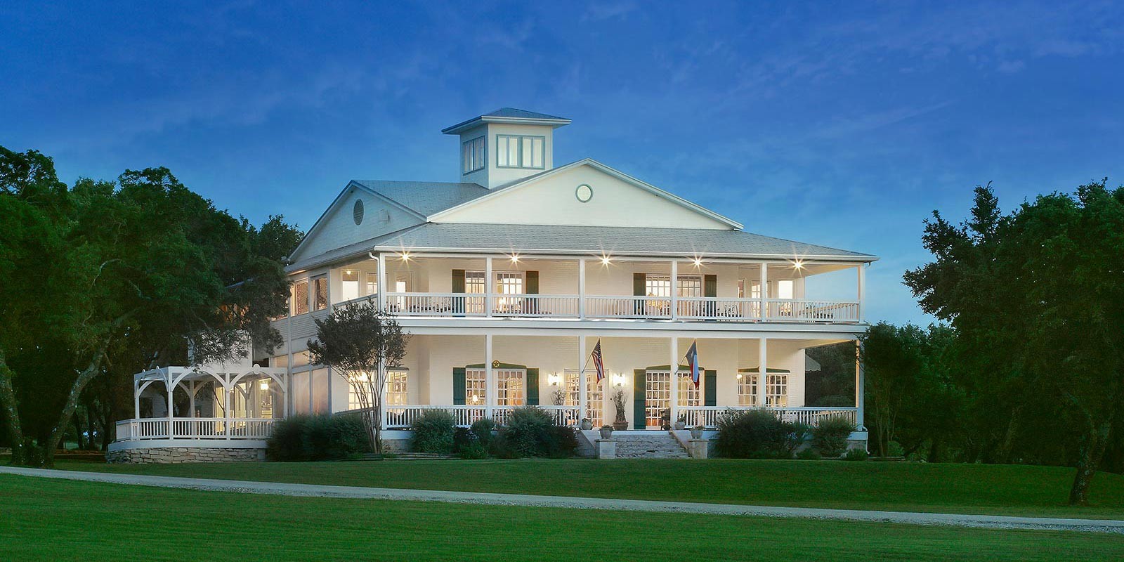 Rose Hill Retreat ist eine Frühstückspension in Fredericksburg, TX, und ein AAA Four Diamond/Diamond Collection Gasthaus. Es befindet sich auf einem 38 Hektar großen Gelände hoch oben auf einem Hügel inmitten des Texas Hill Country in der Nähe von Fredericksburg, TX. Es stehen 18 verschiedene Unterkünfte zur Verfügung - vier im Hauptgebäude, zwei einzelne Cottages, vier Ultra-Suiten und acht Cottage-Suiten. Ihr Aufenthalt in dieser Frühstückspension in Fredericksburg, TX, beinhaltet ein komplettes Drei-Gänge-Frühstück, die berühmten Schokoladenkekse und den Zugang zum Erfrischungsbereich mit Tee und Getränken. Das Frühstück wird entweder im Hauptspeisesaal oder auf der vorderen Veranda serviert. Die Unterkünfte sind geräumig und verfügen alle über ein eigenes Bad im Zimmer. Viele haben eine eigene Terrasse oder eine überdachte Sonnenterrasse oder einen schönen Blick über das Tal.