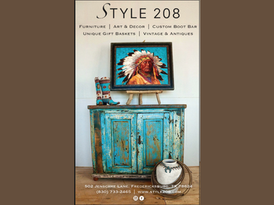 Join us at Style 208 for an indoor/outdoor event, The Artists and the Artisans. Browse curated rustic furnishings, art and decor inside the Style 208 showroom and boutique featuring custom boots! Enjoy live music by John M. Greenberg, ShAnnie, and Keelan Donovan, wine by Lisa Kennelly of Diamond Vineyards and the Conchita's Mexican Fusion food truck. Our featured fine art painter, Eric Fasking, will be showcasing his masterful works. Visit our wonderful vendors: Amy Tucker Studio (Textile & Jewelry Artist), Santa Fe Handwoven Designs (Weavings and Jewelry), Basil Botanicals (Tallow Products), Bogusia Farmstand (Baked Goods), Hearthstone Wearable Art (Custom Hats), Terrie Bodine (Jewelry), Susasn Fasking (Stained Glass), Mexico Lindo (Rustic Furniture), Litsa Folse (Encaustic Art & Cowhide/Leather Handbags). Outdoor tented event as well as indoor showroom and vendor tables.