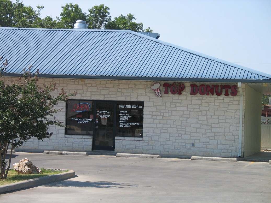Top Donuts ist ein Donut-Laden mit vollem Serviceangebot, der eine Vielzahl von Leckereien anbietet, darunter Donuts, Kolaches, Gebäck und mehr. Sie haben auch eine große Auswahl an Getränken, darunter Kaffee, Säfte und mehr.