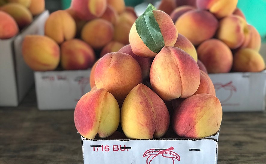 Besuchen Sie einen Straßenstand - Holen Sie sich einen Korb mit saftigen, süßen Fredericksburg-Pfirsichen und greifen Sie zu.