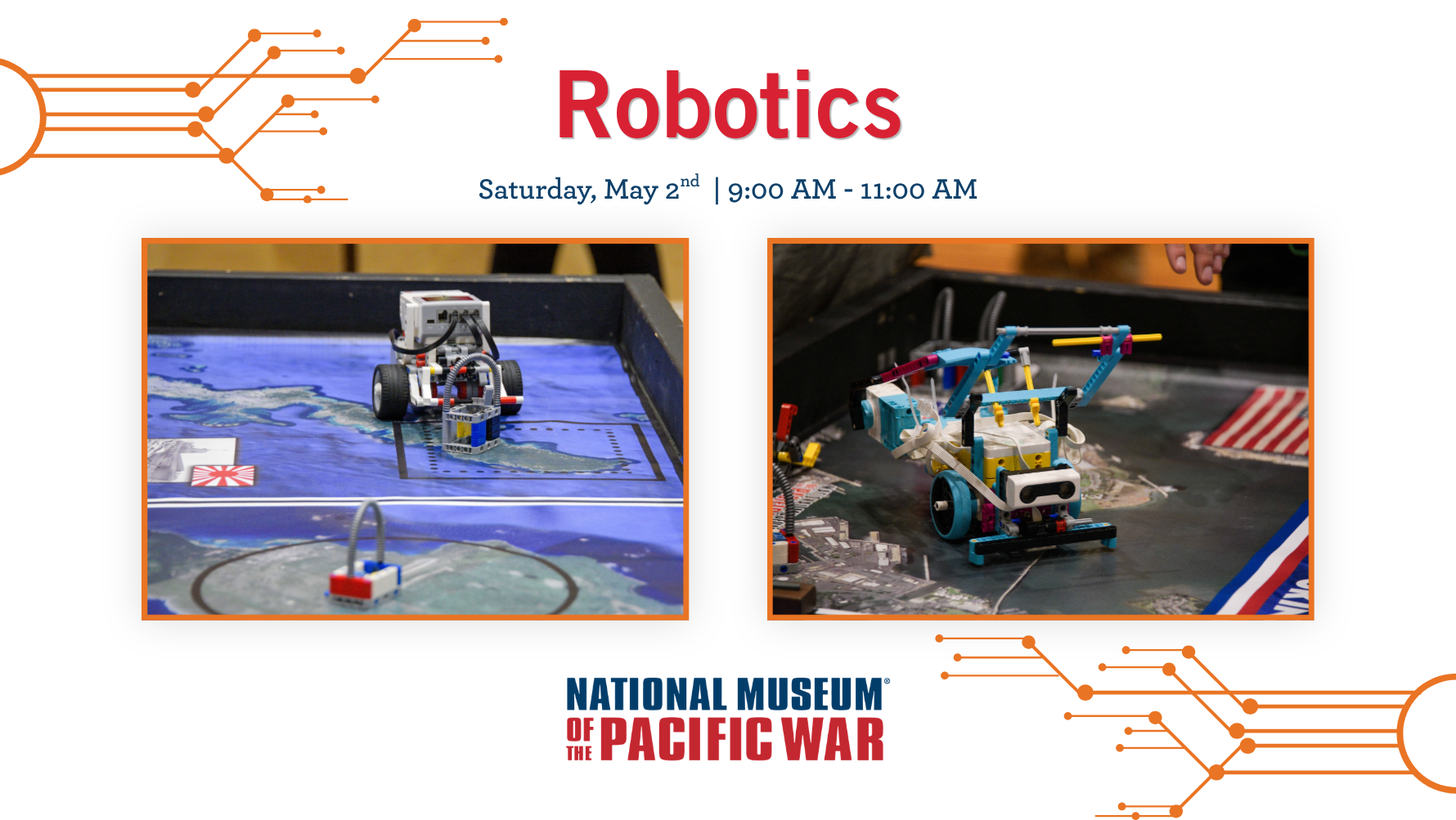 With a growing emphasis on Science, technology, engineering, art, and math (STEAM), the National Museum of the Pacific War is hosting its annual robotic competition on Saturday, May 2nd, from 9:00 to 11:00 AM. Students design and program their robots to carry out missions as they island hop across the Pacific.