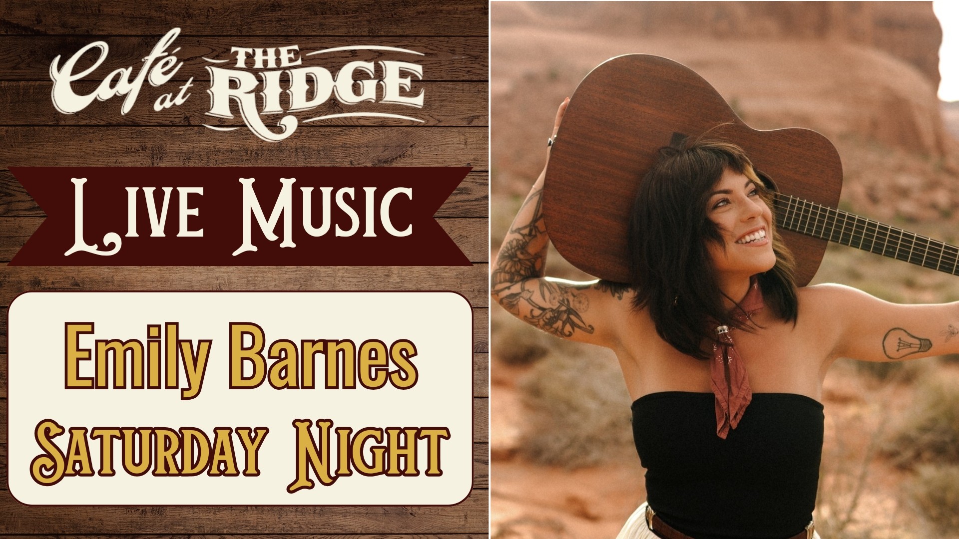 Join us for a laid-back evening with Emily Barnes, a contemporary folk singer-songwriter bringing her heartfelt sound to Cafe at the Ridge. Her acoustic style and honest lyrics set the tone for a relaxing night of live music you won’t want to miss.