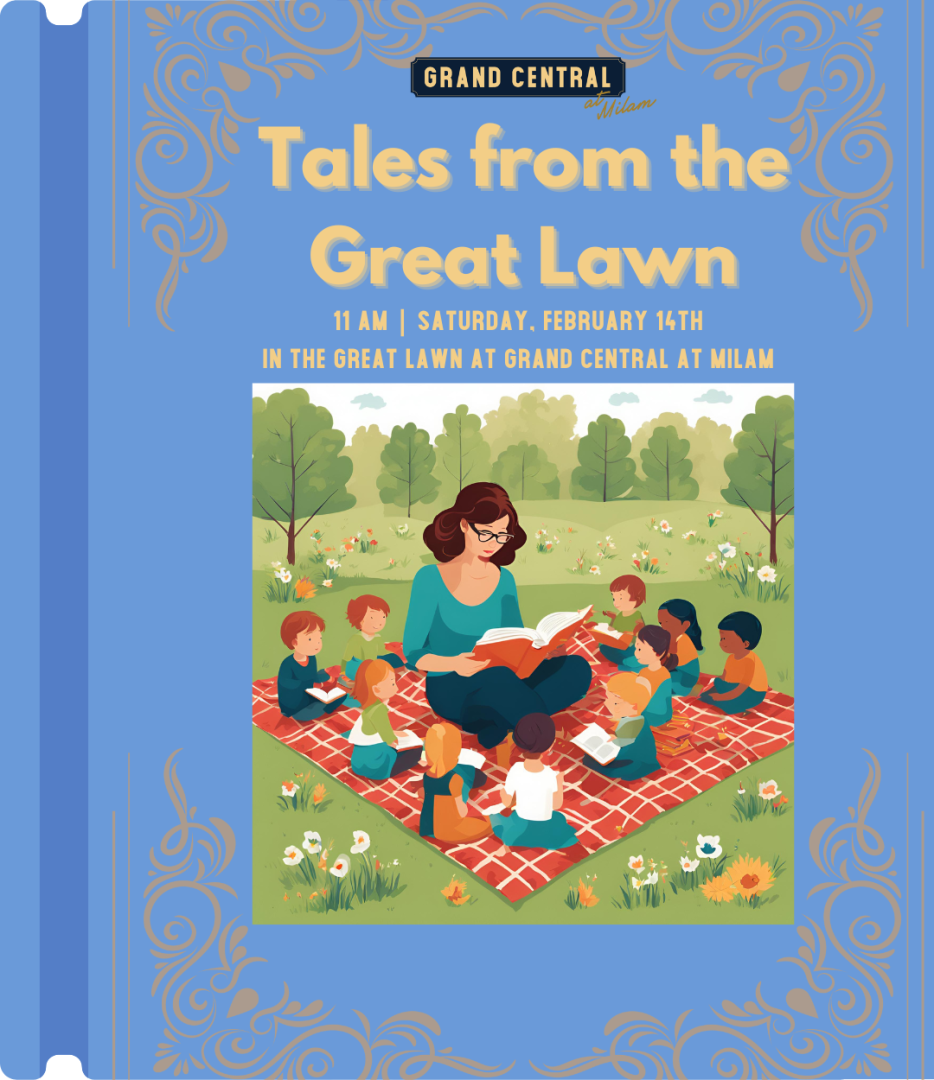 Tales from the Great Lawn is a delightful storytime event hosted by Grand Central at Milam. We invite you to join us and enjoy this enchanting gathering in our beautiful outdoor venue. This event is perfect for anyone who loves a good story. Friday 14th at 11am.