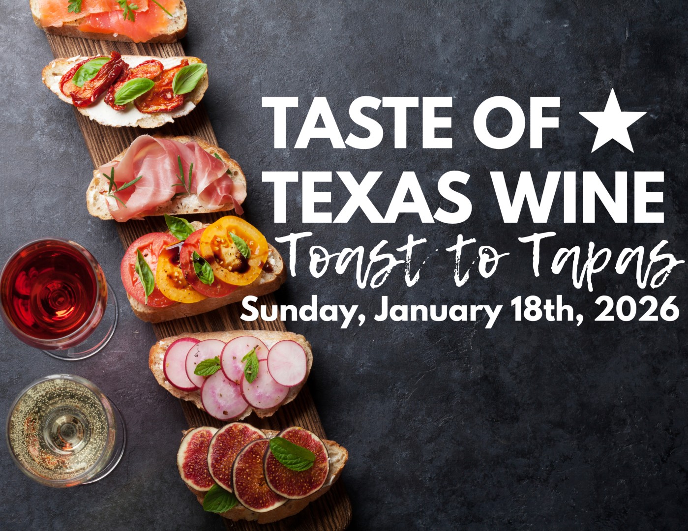 Begleiten Sie uns zu einem geschmackvollen Toast auf Tapas und texanischen Wein! Nippen Sie, naschen Sie und lernen Sie, während wir Sie auf eine köstliche Tour durch texanische Weine mitnehmen, die jeweils perfekt mit leckeren, vom Küchenchef zubereiteten Tapas kombiniert werden. Texas Wine Collective wird sechs unserer Weine mit einer Vielzahl von Tapas kombinieren, die lokale Zutaten und Geschmacksrichtungen hervorheben. Wir plaudern über Geschmacksprofile, Kombinationstipps und wissenswerte Fakten zu den Weinen, während Sie sich durch das Angebot probieren - die perfekte Veranstaltung für Weinliebhaber, Feinschmecker und alle, die einfach nur Spaß haben wollen.
