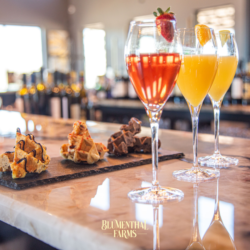 🧇 3 Sparkling Wine Mimosas paired with 3 Mini Waffles