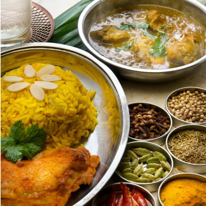 Menü: Wintergarten-Salat mit Blutorangen-Vinaigrette, Lauch-Kartoffelsuppe, Quiche Provençal, Tandoori-Hähnchen mit Pilaw